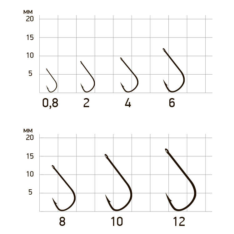 • Прямое жало крючка