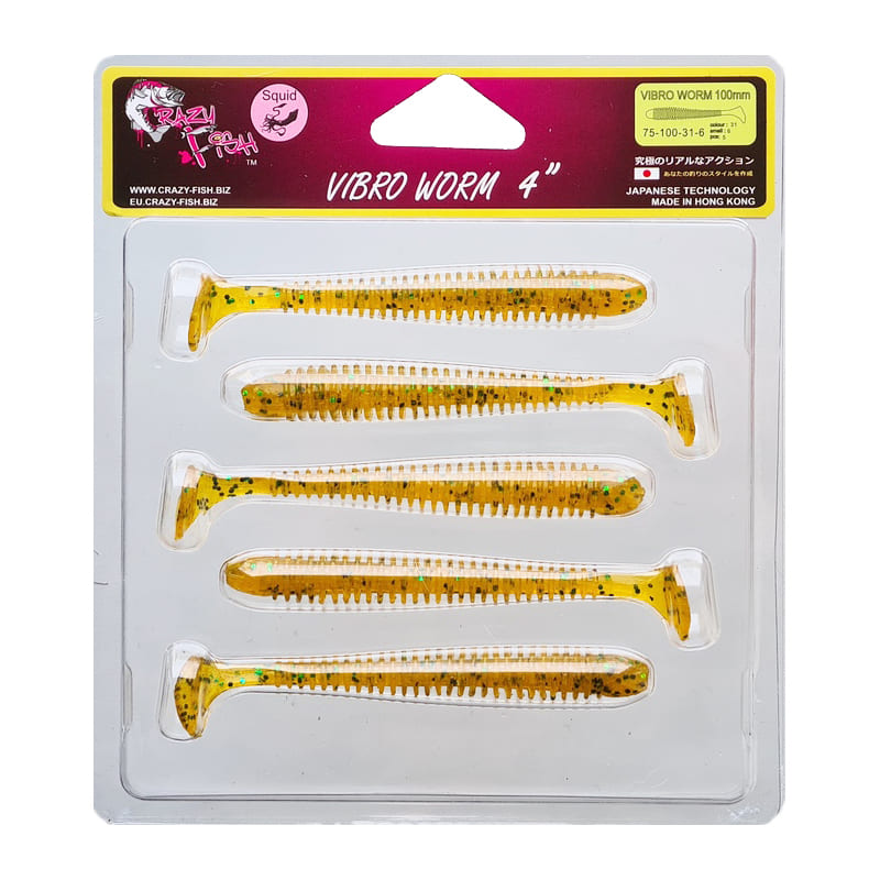 Силикон. приманки Crazy Fish Vibro Worm 4. 75-100-31-6